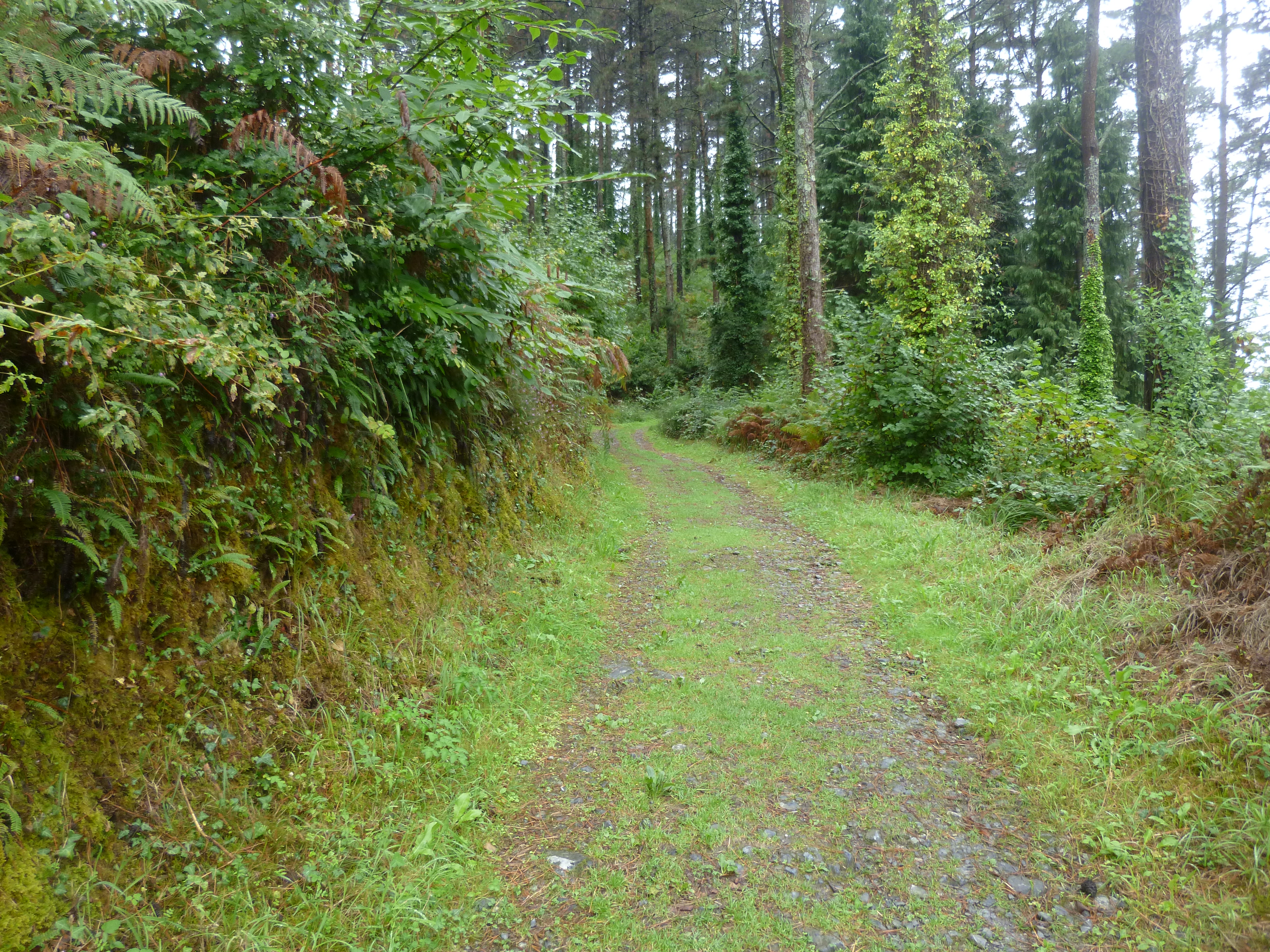 Well, “those Spanish young women” came along behind me just when I was stuck, with no way down that I could see . . . down off a high mud-step. Two of the girls go around me and one holds out her hand. “Do you need some help?” Yes, ma’am. Finally the track is over, at least for awhile. Munitibar is ahead, and I stop at a bar. The woman makes me a fresh omelette, with tomato and cheese. Bread, of course, and some mint tea, and I sit for a while. I’m headed to Guernika and will meet Ria there.