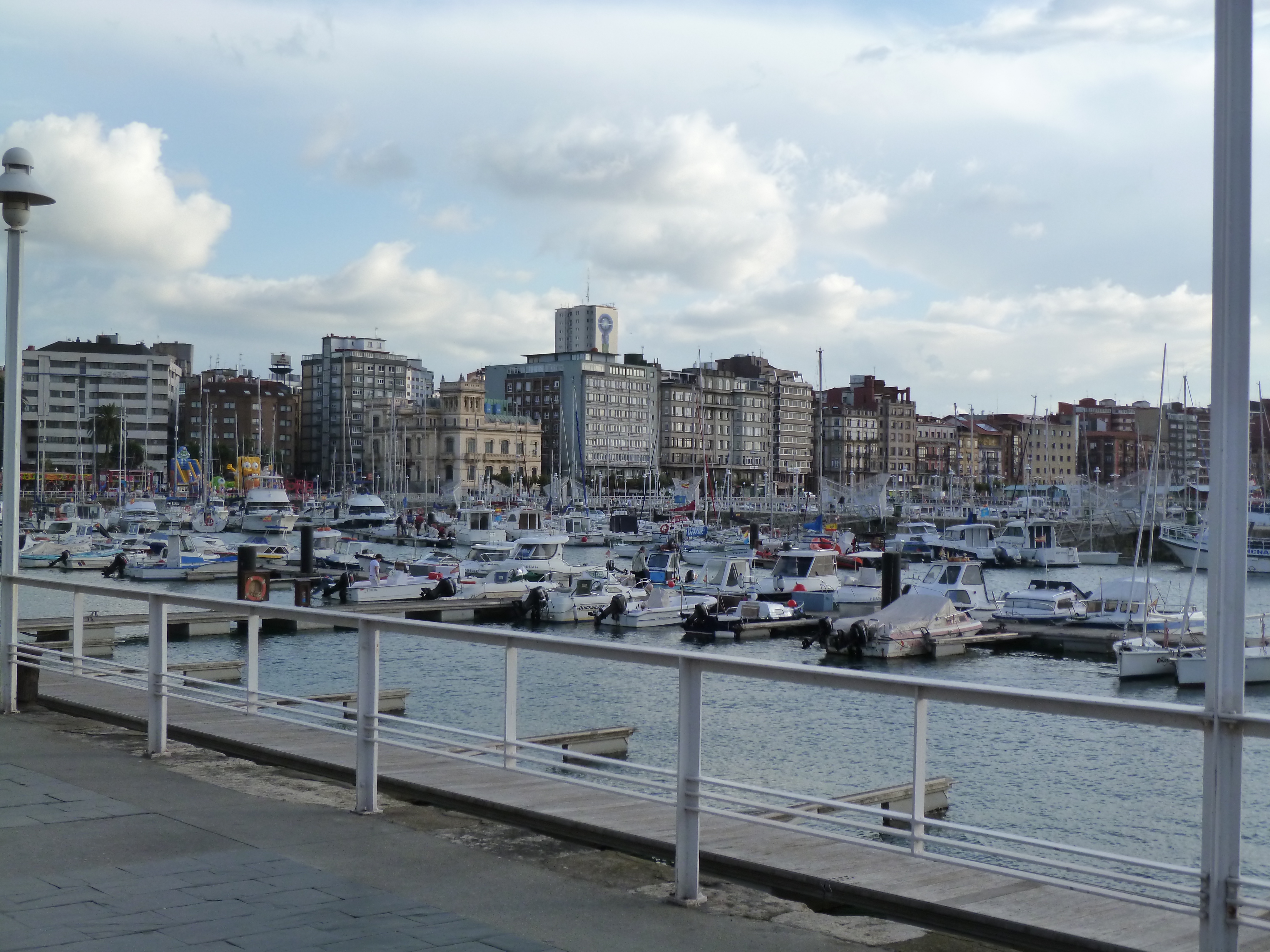 As we approach what was a long, deep beach before the tide came in, we hear a familiar laugh down the walkway. Erika had been lying on the sand w-a-a-a-a-ay out around the bend, and saw Larry gazing out to sea. She called to him and then ran up and gave him a huggy greeting before they walked back up the boardwalk and found us. The Four Muskateers are back in business for 36 Hours in Gijon.